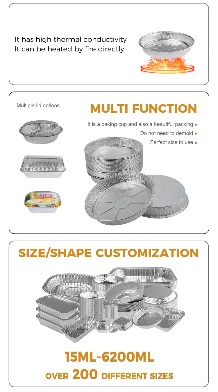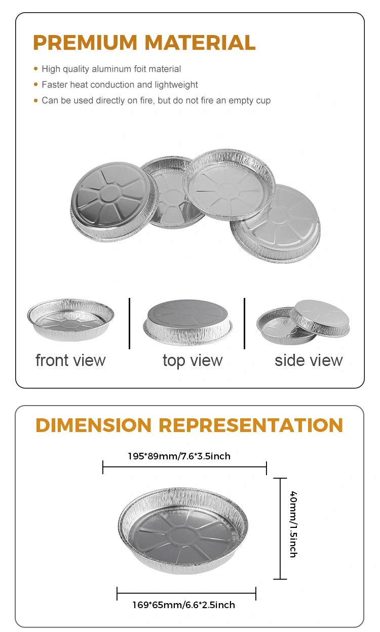 Yunchu alüminium folqa 7 düym qırışmış pizza pizza pizza pizza paxlalı alüminium folqa konteynerləri 5067 nömrəli model alüminium folqa qabları 168 mm (təxminən 6.6 düym), aşağı diametri (təxminən 5.7 düym) və hündürlüyü 25 mm (təxminən 0.9 düym) var. Təxminən 400ml (təxminən 14,1 oz) tutumu olan, çörək zamanı yapışmadan pizza bişirmək üçün idealdır, qəlibdən azad olmaq asandır və bir qoxu yoxdur. Bundan əlavə, onun tam qıvrılmış dizaynı qidanın tökülməsinə, praktikliyin artırılmasına mane olur. Müştərilərinizin təəssüratını dərinləşdirməyə və markanın görünməyinizi inkişaf etdirməyə kömək etmək üçün logo özelleştirme xidmətləri göstərə bilərik.