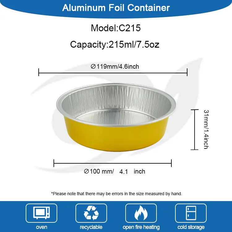 Birdəfəlik çörək qablaşdırma dəyirmi smootwall alüminium folqa konteynerləri, yeni ili qeyd etmək və ya doğum günü partiyalarının, restoran və ya kafedə olan, restoran və ya kafedə, bu konteynerin ticarəti etmək kimi müxtəlif ssenarilərə uyğunlaşdırıla bilən bir məhsuldur. Pişirməyi sevən və ev pudingləri, tortlar və ya mousse kimi anbarlara xidmət etmək üçün istifadə edilə bilən ev istifadəçiləri üçün də əvəzolunmaz bir köməkçidir.