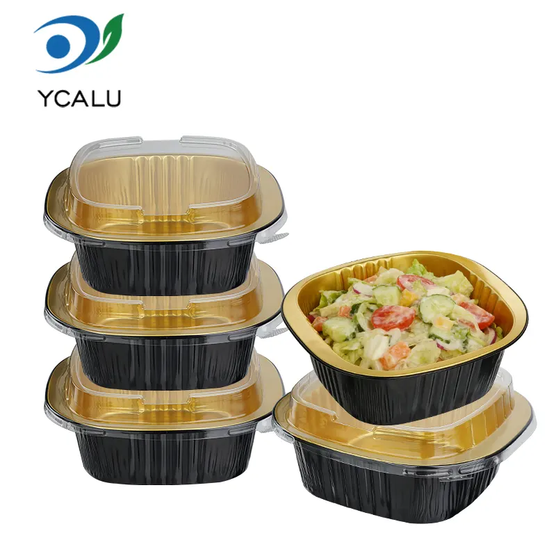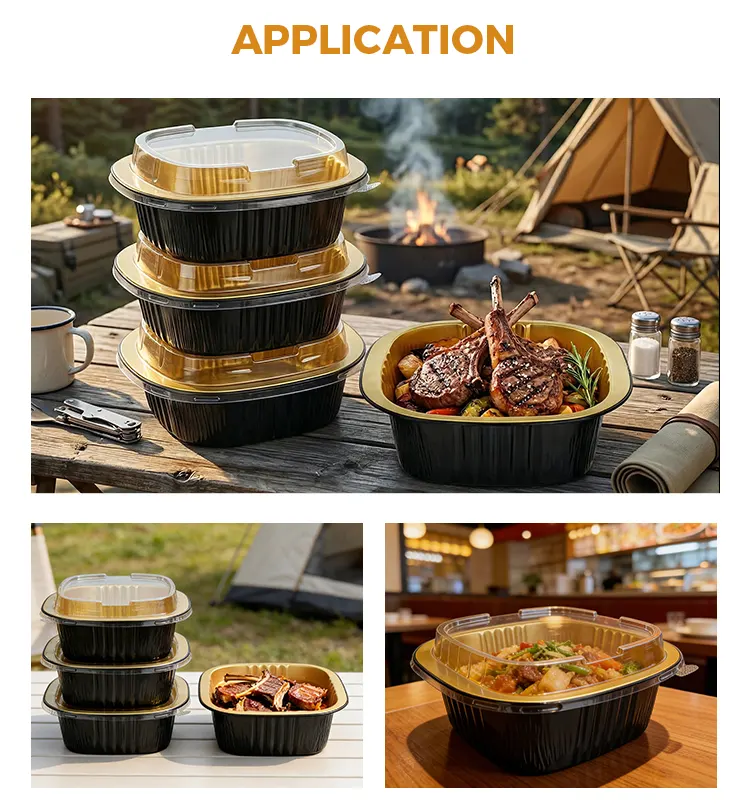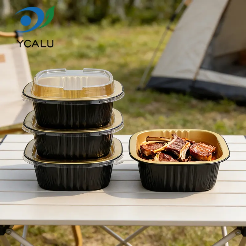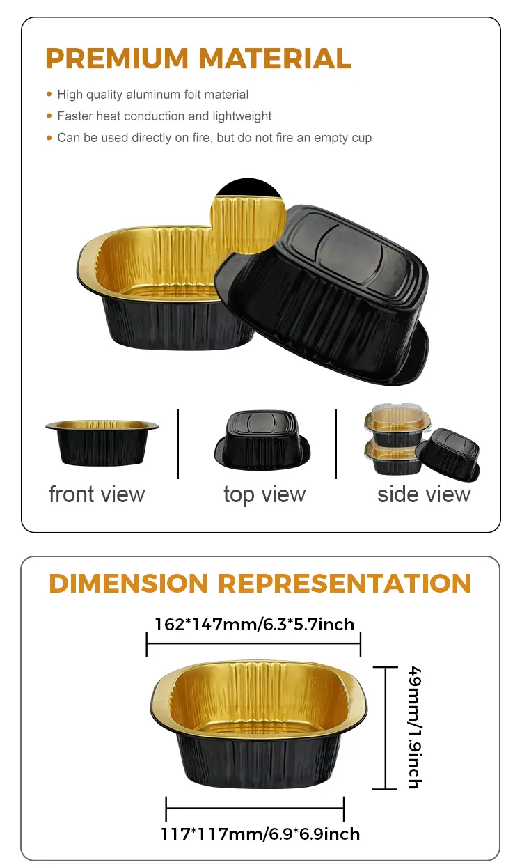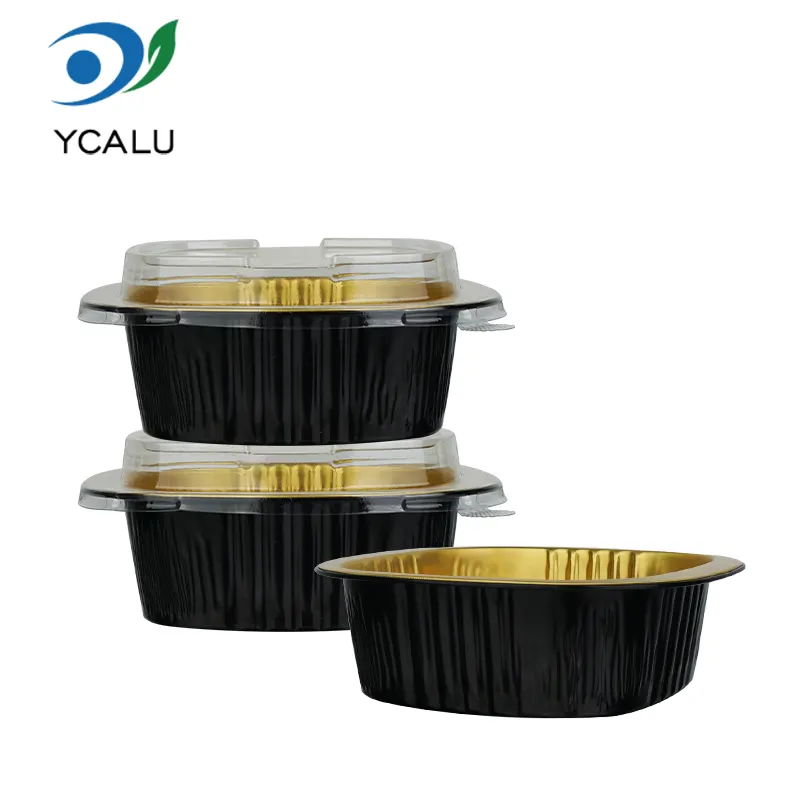 Qaynar Teqlər: Birdəfəlik binaural kvadrat qutu qara qızılı alüminium folqa qabları