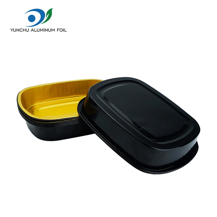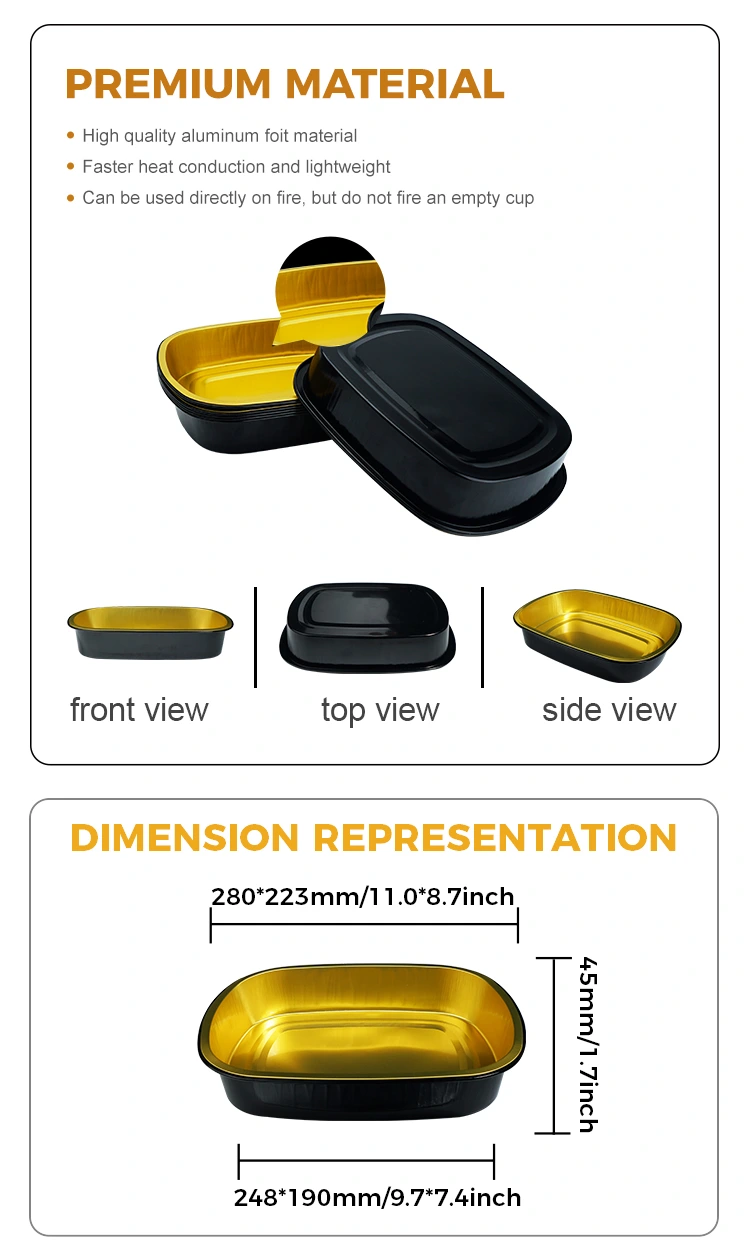 • Birdəfəlik Qara Qızıl Yeməkləri Düzbucaqlı Alüminium Folqa qablarıBirdəfəlik Qara Qızıl Yeməkləri Düzbucaqlı Alüminium Folqa qabları