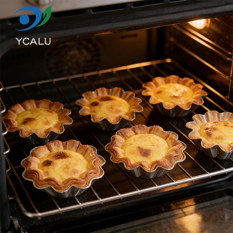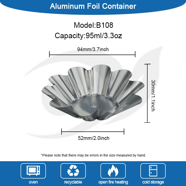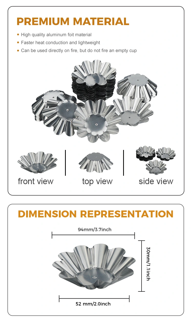 Yunchu alüminium folqa təchizatçısının birdəfəlik xrizantema yumurtası tart qabı gümüş alüminium folqa qabı SGS sınaq standartlarına cavab verən qida dərəcəli alüminium folqa istifadə edir. Ağır metallara, qoxuya və sabit kimyəvi xüsusiyyətlərə malik deyil. Səthdəki sıx oksid təbəqəsi qida ilə qab arasındakı reaksiyanı effektiv şəkildə təcrid edə bilər. Zərərli maddələr istehsal etməyəcək və hər cür qida ilə birbaşa təmasda ola bilər. İstər yüksək temperaturda bişirmə, istərsə də aşağı temperaturda soyuducu, qida təhlükəsizliyinə zəmanət verilə bilər. Klassik xrizantema kubokunun krujeva dizaynı hamar və incə xətlərə və nizamlı formaya malikdir. Pişirildikdən sonra əlavə dəyişiklik tələb etmir. Yumurtalı tartların və qəlyanaltıların səviyyəsini dərhal artıran zərif bir quruluşa malikdir. İstər ailə paylaşımı olsun, istər bayram yeməyi, istərsə də işgüzar yemək olsun, onu asanlıqla ayırd etmək olar. Kubokun gövdəsi bir hissəyə möhürlənib, heç bir boşluq yoxdur, dibi düz və sabitdir, bu da çörək qabına və ya sobaya qoyulduqda yıxılmağı çətinləşdirir.