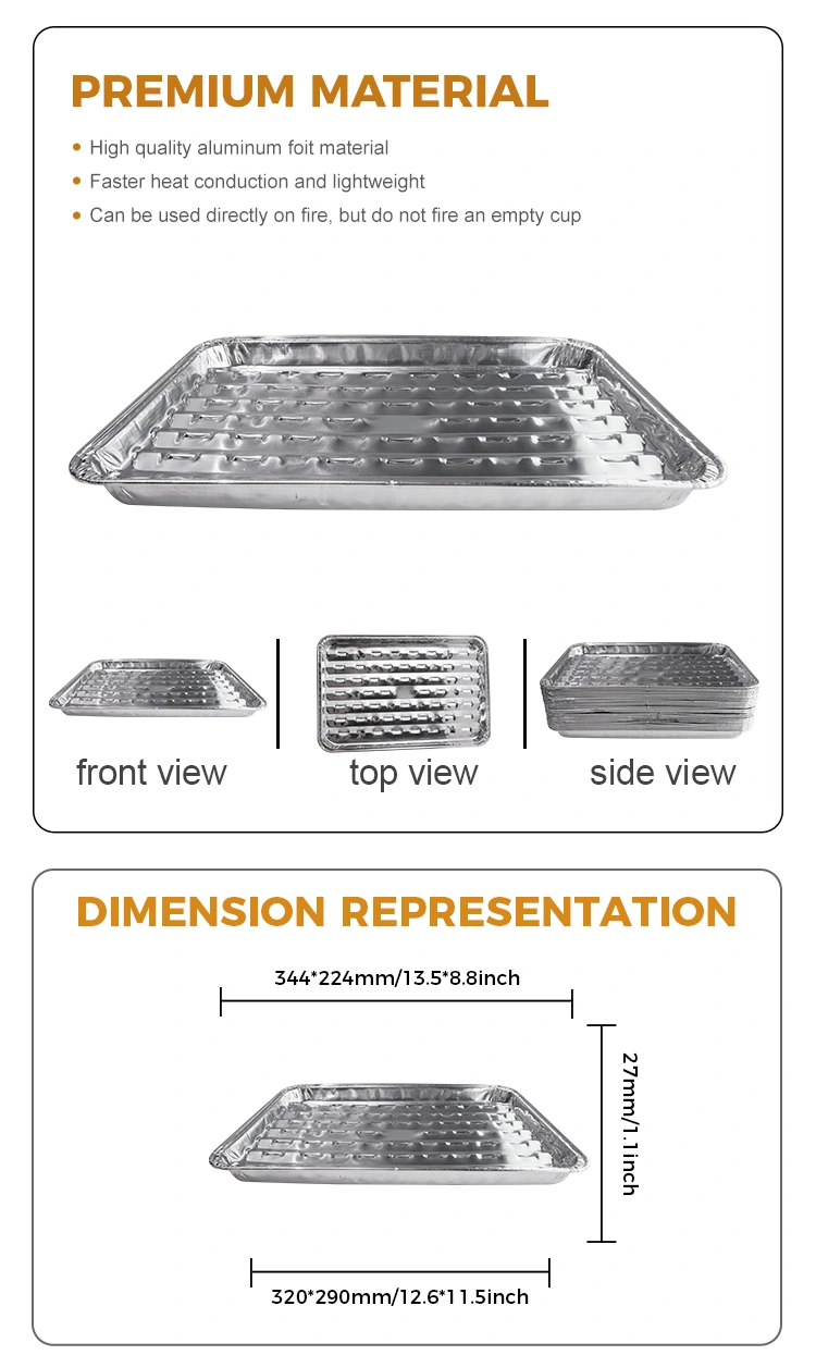 Yunchu Alüminium Foleral Təchizatçı Birdəfəlik Grill Pan, açıq və qapalı qızartma üçün uyğundur, bu çörək qabı unikal bir deşik dizaynı var, neft tüstü problemi barədə narahat olmağa ehtiyac yoxdur. Çuxurların dizaynı sürətli istilik keçiriciliyinə və ənənəvi çörək qablarının yerli həddindən artıq istiləşməsindən qaçaraq daha çox vahid istilik üçün imkan verir. Səhrada və ya bir ailənin toplanmasında düşərgə olub-olmaması, bu qazma barbekü üçün təmiz, sağlam bir mühit təmin edir. Yunchu alüminium folqa birdəfəlik qril tavası, manqal prosesi zamanı gigiyena və təhlükəsizliyi təmin etmək üçün qida dərəcəli əlaqə materiallarından hazırlanmışdır. Yüksək keyfiyyətli alüminium folqa materialı yalnız davamlı deyil, eyni zamanda hamar bir səthə malikdir və heç bir sağlamlıq riskindən narahat olmadan yeməyinizdən zövq almağa imkan verən bir qoxu yoxdur. Bu çörək qabı, görünüşü praktikliyə qədər nəzərə alaraq hər detal ilə hazırlanmışdır.