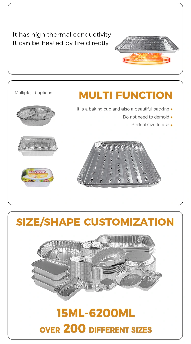 Yunchu alüminium folqa, kömür qızartma, deşikli dizayn Yağlı, inteqrasiya edilmiş qəlibləmə, divar səthi hamar və bir güzgü kimi təmizdir, həm gözəl, həm də praktik, həm də qida xidməti səhnələrinin təfərrüatlarına və xidmət keyfiyyətinə diqqət yetirənlər üçün əlverişli olan paketin ümumi toxumasını əhəmiyyətli dərəcədə yaxşılaşdıra bilər.