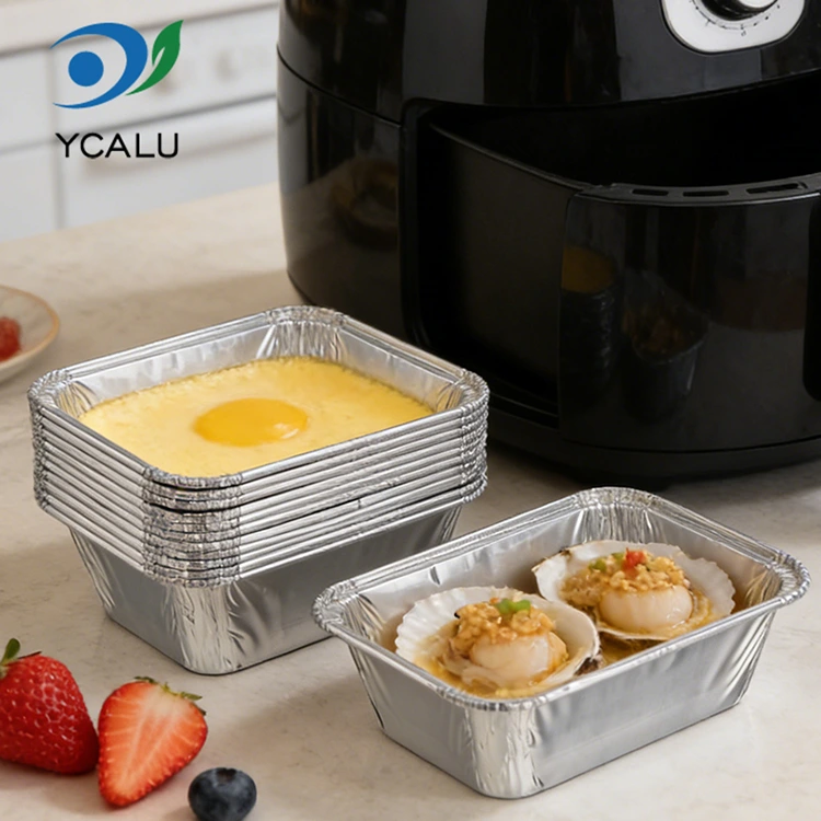 Yunchu Alüminium Folqa Zavodunun birdəfəlik düzbucaqlı çörək bişirmə tortu gümüşü alüminium folqa qabı qalınlaşdırılmış qida dərəcəli alüminium folqa materialından hazırlanır və daxili divar qida dərəcəli örtüklə işlənir. Zəhərli deyil, qoxusuzdur və zərərli maddələr buraxmır, qida ilə birbaşa təması daha təhlükəsiz edir. -20°C-dən 250°C-ə qədər temperatur müqaviməti ilə yerli və xarici qida ilə təmasda olan qabların təhlükəsizlik standartlarına uyğundur. Dondurmaq üçün birbaşa sobaya, fritözə, mikrodalğalı sobaya və soyuducuya qoyula bilər. Konteyneri soyudulmuş formadan yüksək temperaturda bişirməyə dəyişməyə ehtiyac yoxdur. Alüminium folqa materialı təkrar emal edilə və təkrar istifadə edilə bilər ki, bu da yaşıl ətraf mühitin mühafizəsi konsepsiyasına uyğundur və resurs tullantılarını azaldır. Məhsul nazik və daşına biləndir və yığılıb saxlanıla bilər, bu da saxlama və nəqliyyat sahəsinə qənaət edir. Həm praktikliyi, həm də ətraf mühitin mühafizəsini nəzərə alaraq, partiyalarda istifadə edildikdə xərclərə qənaət edir.