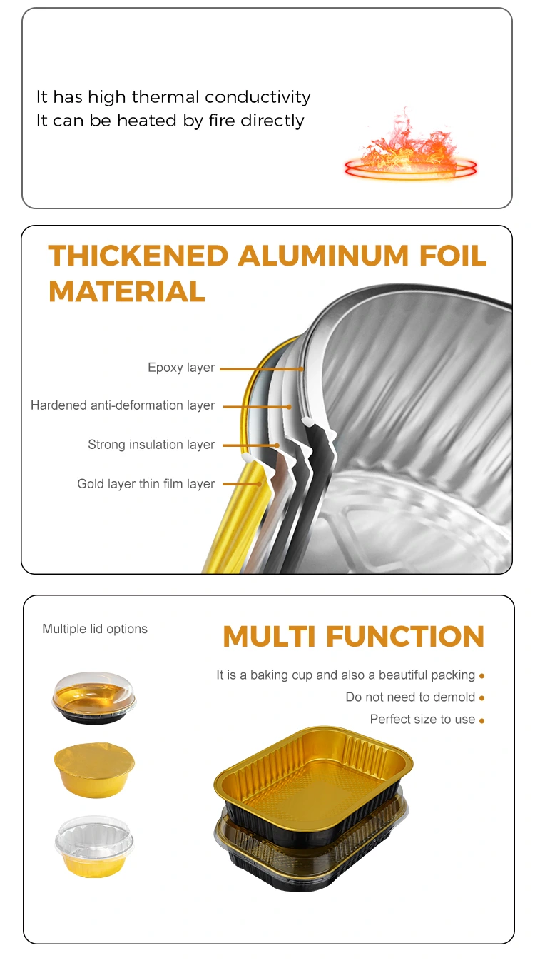 Yunchu alüminium folqa təchizatçısının birdəfəlik düzbucaqlı iaşə qəbulu üçün yüngül divarlı alüminium folqa qabları qida keyfiyyətindən hazırlanır. Onlar ciddi şəkildə işlənmiş və ekranlaşdırılmışdır və heç bir özünəməxsus qoxusu yoxdur. Bütün istehsal prosesi heç bir zərərli əlavələr olmadan təmiz və tozsuz bir emalatxanada tamamlanır. Düyü, ət, şorba və s. də birbaşa təmasda ola bilər. Bu alüminium folqa qabı FDA standartlarına ciddi şəkildə əməl edərək, ABŞ FD A qida dərəcəli sertifikatını keçmişdir. Peşəkar sınaqdan sonra, alüminium miqrasiyasının miqdarı müəyyən edilmiş hədddən çox aşağıdır və test standartdır. Biz rəsmi sınaq hesabatı əldə etmişik. O, nəinki daxili iaşədə istifadə oluna bilər, həm də xaricə ixrac tələblərinə tam cavab verir. İkiqat zəmanət, istər zəncirli fastfud, istər şəxsi mətbəx, istərsə də sərhəddən kənar aparat tacirləri olsun, istifadə oluna bilər. Soyuducu soyuducu və dondurucu anbardan mikrodalğalı sobada qızdırmaya, sobada bişirməyə və hətta açıq alovla isitməyə (istilik izolyasiya alətləri tələb olunur) isti şorba və isti yeməkləri qablaşdırma üçün istifadə edilə bilər. Uzun müddət isti saxlansa belə, qab nə yumşalmayacaq, nə deformasiyaya uğrayacaq, nə əriyəcək, nə də zərərli qazlar əmələ gətirəcək; istehlakçılar yeməyi qəbul etdikdən sonra qabı dəyişməyə ehtiyac yoxdur, ancaq onu qızdırmaq üçün birbaşa mikrodalğalı sobaya qoyurlar. Üstəlik, istiliyi bərabər şəkildə ötürür, buna görə də istilik zamanı yerli həddindən artıq istiləşmə və ya yemək tutulmayacaq. Yeməyin dadını maksimum dərəcədə saxlaya bilir. İstər bişmiş düyü, güveç, istər manqal, istərsə də bişmiş yarımfabrikatlar qablaşdırma üçün uyğundur.