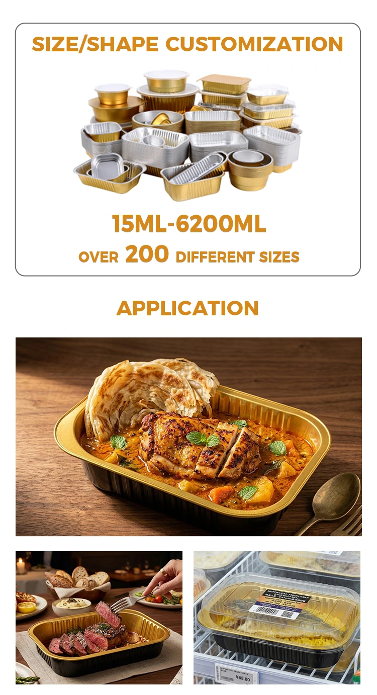 Birdəfəlik düzbucaqlı yemək üçün Alüminium Folqa Konteynerləri
