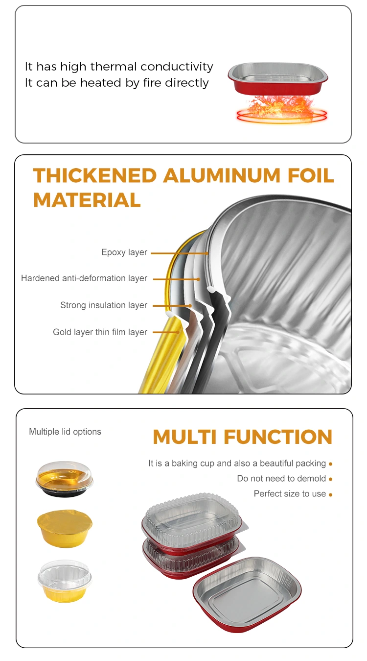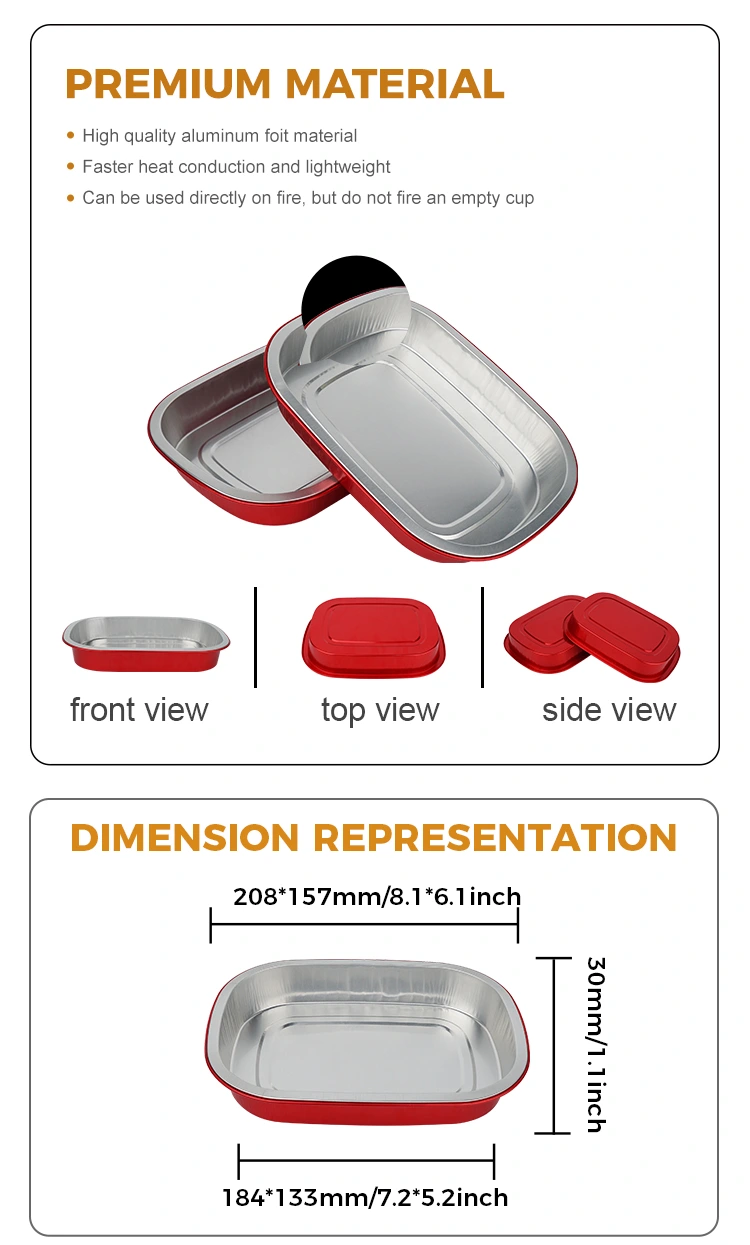 Seçiminiz üçün birdəfəlik qırmızı nahar qutusu kvadrat Alüminium Folqa Konteynerlərinin bir çox xüsusiyyətlərini təklif edirik: