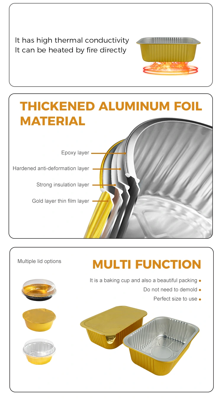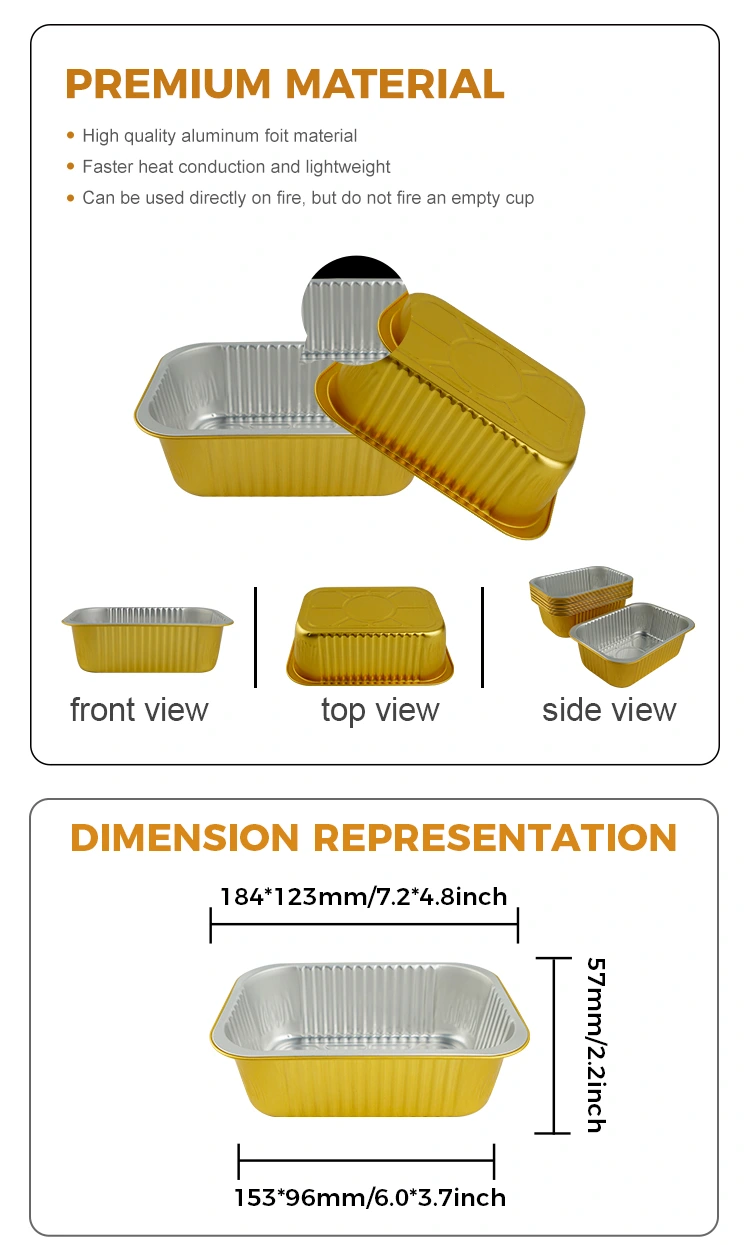 Yunchu Alüminium Foleral Təchizatçı Birdəfəlik Meydan Gratin Alüminium folqa konteynerləri, əla möhürləmə performansı, yüksək temperatur müqaviməti və sızma müqavimətinə malik olan alüminium folqa möhürləmə qapağı ilə istifadə edilə bilən yüksək keyfiyyətli qida dərəcəli alüminium folqa materialından diqqətlə hazırlanmışdır. Yemək qablaşdırması, istilik, soyuducu və qəbulu, məsələn, müxtəlif ssenarilərdə geniş istifadə olunur. Səth yüngül bir divar ilə hazırlanmışdır və görünüşü, qablaşdırma səmərəliliyini yaxşılaşdırmaq üçün istilik sızdırmazlığı filminin avtomatik möhürlənməsi üçün əlverişli olan düz və hamardır.
