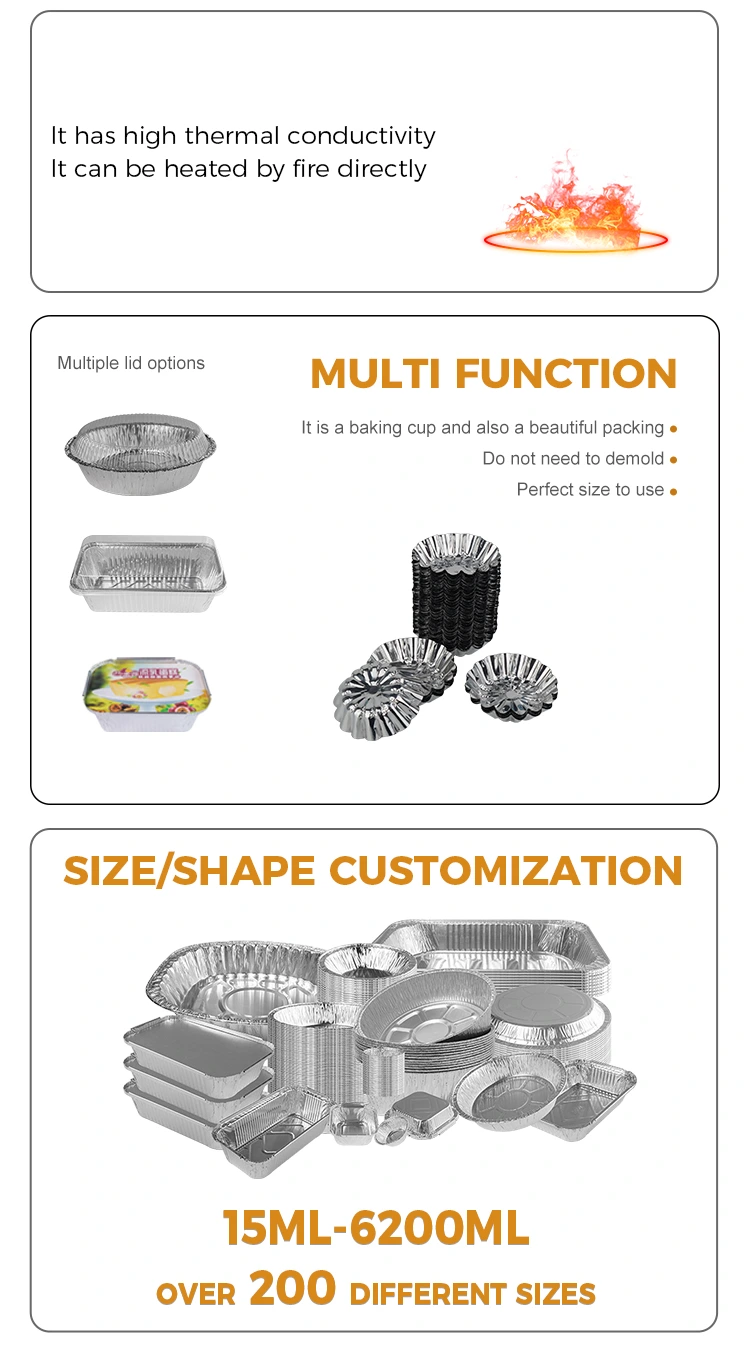 Yunchu alüminium folqa yumurta tarts bir hava fryer gümüş alüminium folqa qida qabında bişirilir Topdan məhsullar, alüminium folqa materialı, təhlükəsiz və toksik olan, alüminium folqa qidası, yaxşı istilik keçiriciliyi ilə, yüksək istilik və qeyri-zəhərli istifadə, yüksək temperaturdan istifadə edərkən, məyyənləşdirilməmiş məhsulu, yapışmayan altdan istifadə edərkən, forma, qalın və sərtləşən materialın deformasiyasını asanlaşdıra bilməsi, yaxşı təzyiq müqaviməti asan deyil Qazanın yuyulması və qazanı qorumaq, təmizlənmənin ardından təmizlənmənin, hamar dibi təmizləmək lazım deyil, altdan yapışmayan yeməyin asan olması asan deyil, dibi hamar, in -20 ° c ~ 300 ° c