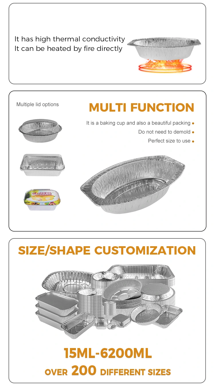 Yunchu Alüminium Folqa Təchizatçısı, ev yeməkləri, çörək, zəncir mağazalar və soyuducu qida çatdırılması üçün oval bişmiş çörək gümüş alüminium folqa qabları təklif edir. Qida-alüminium folqa materialından hazırlanmış, bu konteyner, bir çox gümüş çörək qutuları arasında fərqlənən unikal bir oval forma təqdim edir. Bu konteyner, isti dəsmal, meyvə, çörək və hər cür geri çəkilmə qidaları tutmaq üçün xüsusilə uyğundur və geniş çeşidli qabların ehtiyaclarını ödəyə bilər. Yaxşı istilik keçiriciliyinə görə, yeməyin bərabər şəkildə qızdırılmasını təmin edərək yüksək temperaturu bərabər şəkildə yaymaq olar. Bundan əlavə, müəyyən bir yük daşıyan tutumuna və təzyiq müqaviməti, bir çox yığın vəziyyətində, deformasiyanın qarşısını alan və nəqliyyat zamanı istifadə üçün idealdır. Fərqli ssenarilərə və ehtiyaclara daha yaxşı uyğunlaşmaq üçün bu konteyner müştəri tələblərinə uyğun olaraq düzəldilə bilər və əlavə praktikliyə uyğun qapaqlar təmin edə bilər.