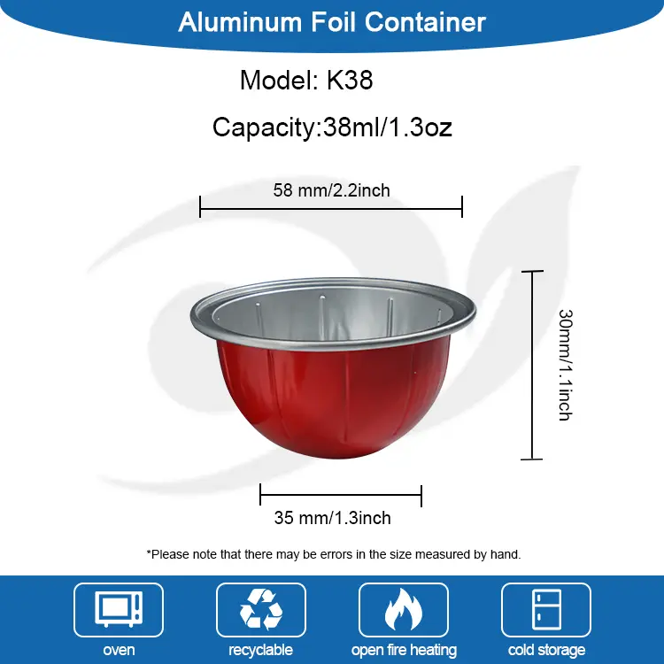 Yunchu alüminium folqa k38 planeti boş qəhvə kapsulu Xüsusiyyətlər: 58 * 35 * 30mm (2.2 * 1.3 düym), gücü 38 ml (1.3 oz) qəhvə, qəhvə maye tuta bilər. Əksər Espresso kapsullu maşınlarına (espresso tozu, espresso maye), çay, souslar və digər qablaşdırma ehtiyacı olan topdansatış ehtiyacları, loqotipi, rəngini düzəldə bilərsiniz və alüminium folqa örtüyündə naxış çap edə bilərsiniz və qəhvə kapsulunun altına möhürlənə bilərsiniz.