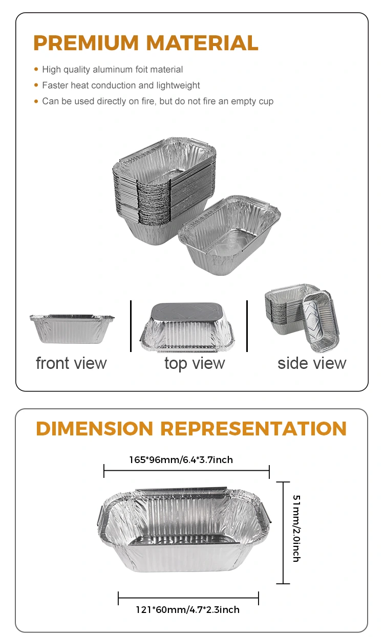 2044 düzbucaqlı bişmiş düyü gümüş alüminium folqa konteynerləri Yunchu Alüminium Folqa Təchizatçısı, açıq bir manqal və ya ailə toplamaq istərsə də müxtəlif ssenarilər üçün uyğundur. Tacirlər nümunələri və ehtiyaclarına uyğun olaraq nümunələri düzəldə bilərlər, müştərilərin gözünü tutan Takeaway qablaşdırma üçün unikal bir seçim halına gətirə bilərlər. Konteyner açıq alov istilik və yağ lampası istiliyini dəstəkləyir və isti bir şəkildə istiləşir, yeməyin bərabər qızdırılmasını təmin edir və tavaya qalmaq asan deyil. Hava fryerinə yerləşdirildikdə dərhal istifadə edilə bilər və altındakı konkav və konveks dizaynı sürtünmə və sürüşmənin qarşısını alır. Tərəflərdəki sərtliklər məhsulun dayanıqlığını artırır, hemming dizaynı, qida temperaturunda effektiv şəkildə kilidlənən qapaq üzərində bir səliqəni təmin edir.