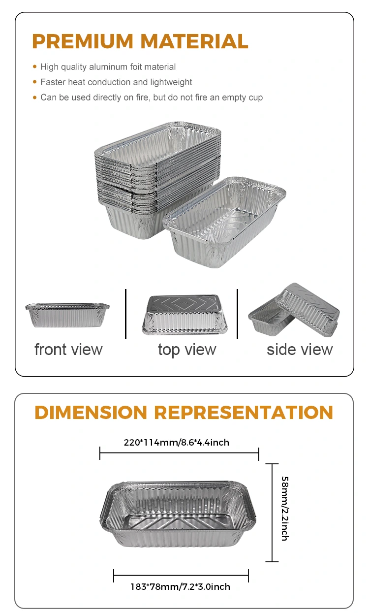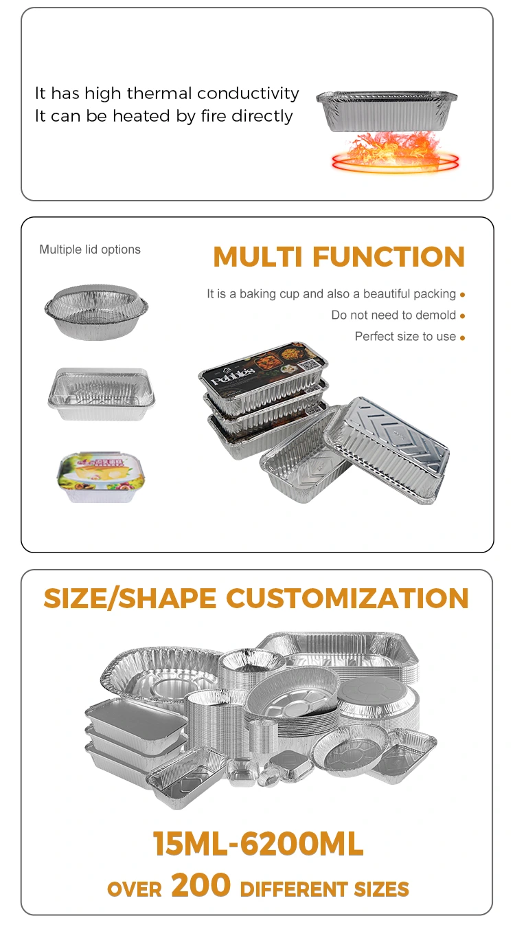Yunchu alüminium folqa təchizatçısı, düzbucaqlı barbekü qalınlaşdırılmış gümüş alüminium folqa qabları, isti qazan, çörək, çörək qablaşdırma, müxtəlif yemək bacarıqları üçün yaxşı bir köməkçi, müxtəlif piştaxtalar və s. İstilik və yağ müqaviməti, asan çörək, açıq çörək, açıq manqal, müvəqqəti qablar oddan qorxmur, yeməkdən və ya şorbanı yerləşdirməmək lazımdır, su olmadan qurumalı deyil, məişət sobaları təmiz və qabları atmaq üçün rahatdır.