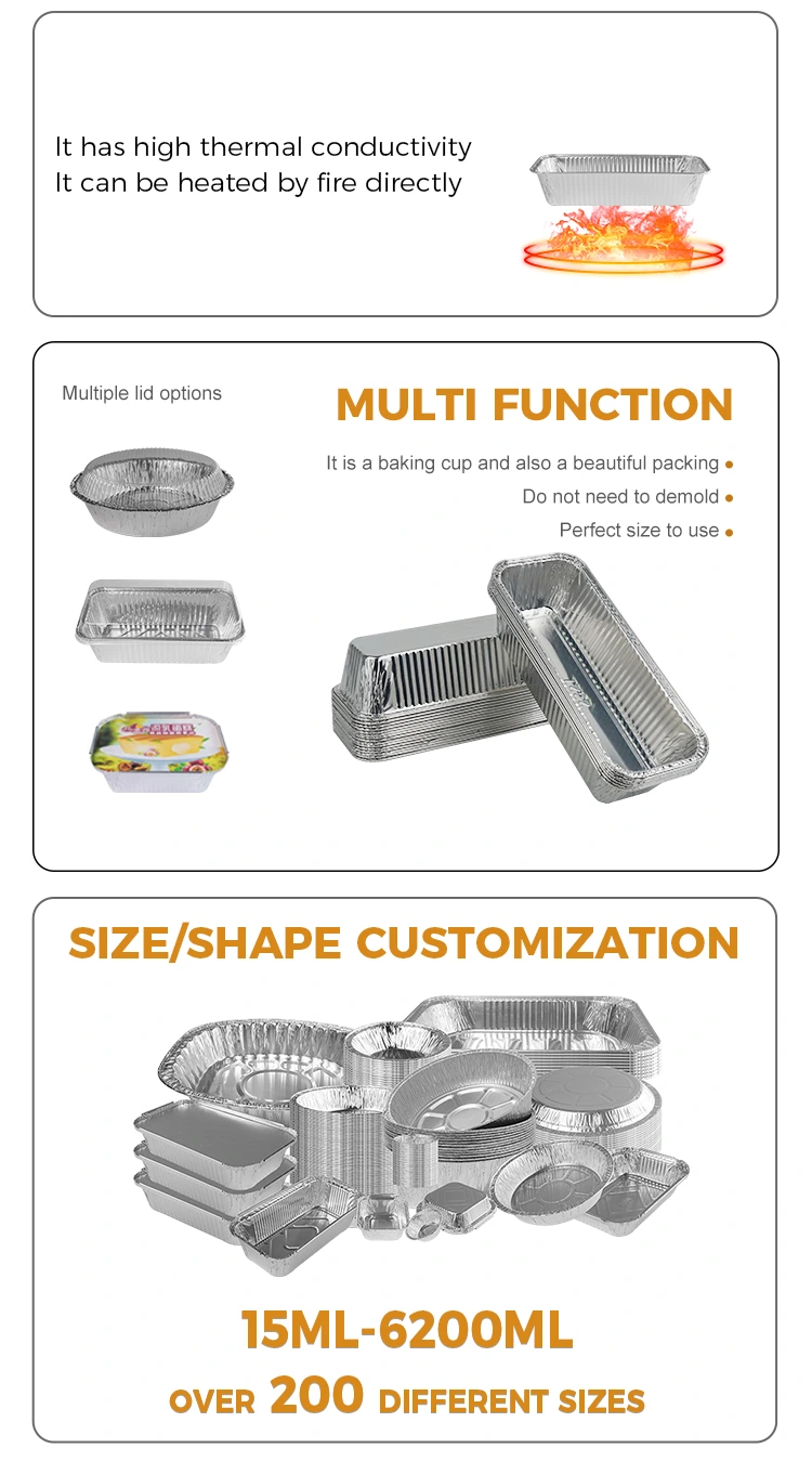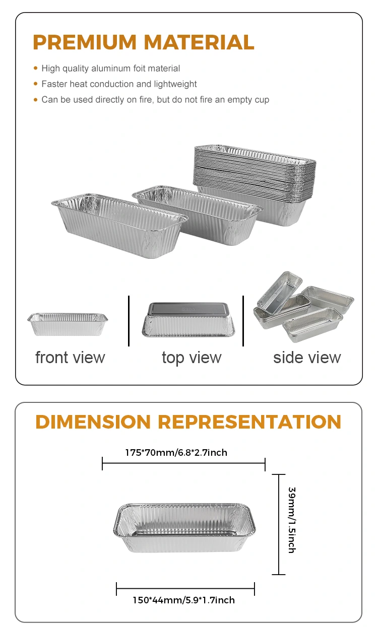 Yunchu alüminium folqa təchizatçısı tərəfindən verilən düzbucaqlı çörək qabığı gümüş alüminium folor konteynerləri qida dərəcəli materiallardan hazırlanmışdır və müxtəlif tətbiq ssenariləri üçün uyğundur. Bu məhsul xüsusilə çörək və ya çörək bişirmək kimi çörək bişirmək kimi qızartma və çörək məqsədləri üçün uyğundur. Kömür ızgarası üçün və ya Takeaway çatdırılma qutusu kimi istifadə etmək üçün mükəmməldir.