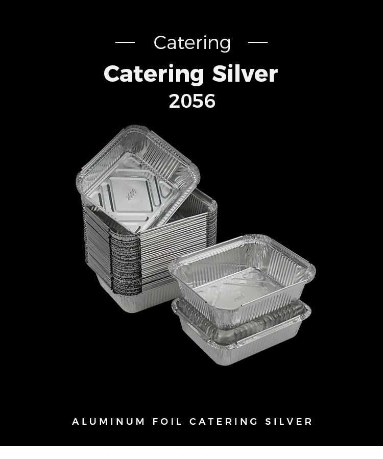 Çində Model 2056 Düzəldilmiş Gümüşü Alüminium Foler konteynerləri, çox təvazökar bir ölçüdə, 170 * 136 mm (6.9 * 5,3 düym), bir baza diametri olan 131 * 101 mm (1.1 *), 620 ml (21.8 oz) Bu ölçüyə yalnız daşımaq asan deyil, həm də müxtəlif istifadə ehtiyacları var.