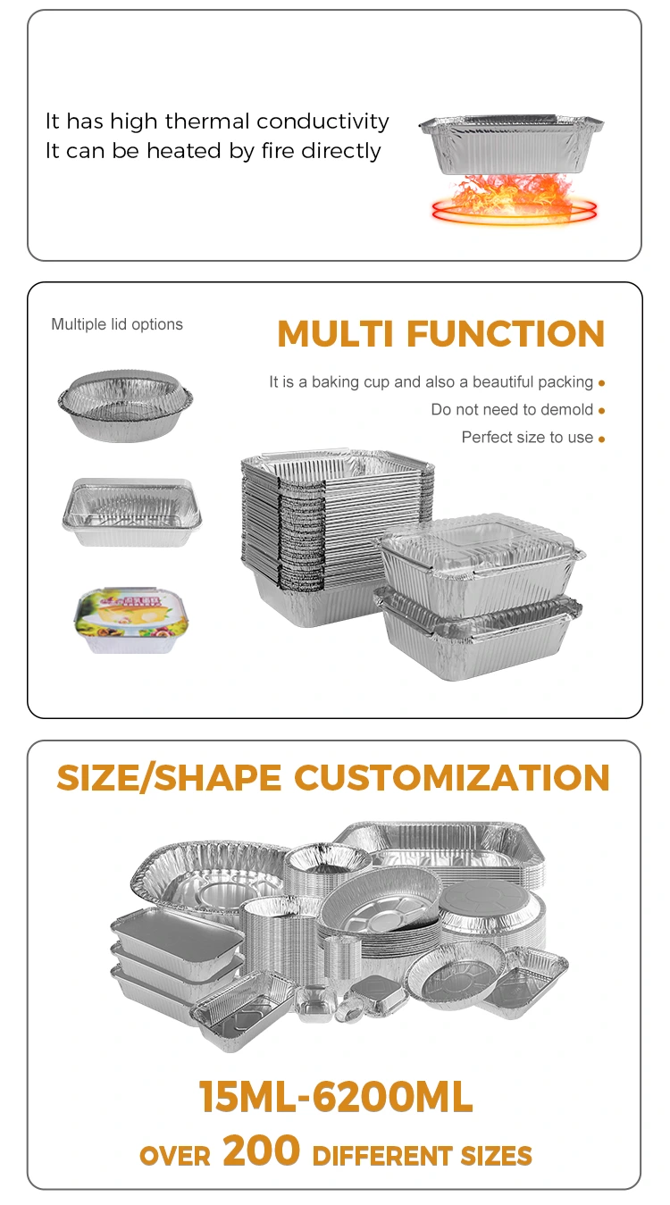 Yunchu alüminium folqa tədarükçüsü, düzbucaqlı gratin qablaşdırma materialı Gümüş alüminium folqa konteyneri, həm yüngül, həm də davamlı olan yüksək keyfiyyətli alüminium folqa materialından istifadə edərək əladır. Yarım bir pet və ya alüminium folqa qapağı ilə təchiz olunmuşdur və altındakı qidaların təhlükəsizliyini və gigiyenasını təmin etmək üçün altındakı bir qapaq var və yan qutuda sabitdir. Bu etibarlı fiziki xüsusiyyətlər və istifadəçi dostu dizayn onları qəbul etmək üçün ilk seçim edir.