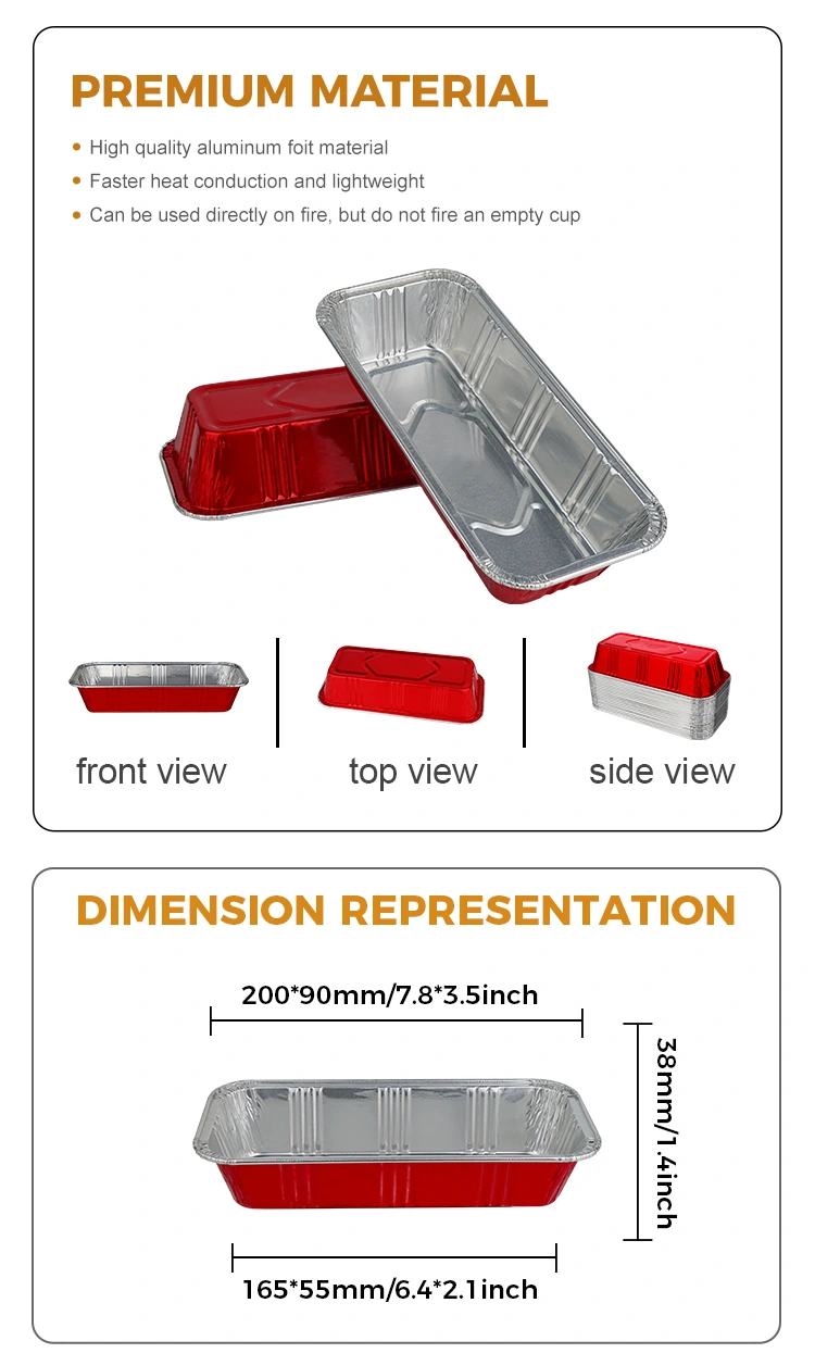 Yunchu Alüminium Folqa Təchizatçısının Düzbucaqlı Qırmızı Çörək iaşəsi Gümüş Alüminium Foler konteynerləri davamlı, soba təhlükəsiz dizayn edir. Hətta yüksək temperatur və açıq alovlar altında sabit qalırlar, 220-dən yuxarı olan temperatur, hətta istilik paylamasını təmin edir və təravətdə kilidləmək üçün güclü sızdırmazlıq təklif edir (havanın və nəmin qarşısını alan, soyutmadan sonra yumşaq saxlayır). Ətraf mühit və estetik üstünlüklər də təklif edirlər. Qida dərəcəli alüminium folqa ilə hazırlanan, qablaşdırma təkrar standartlarına cavab verir və atıldıqdan sonra qanuni kanallar vasitəsilə təkrar istifadə edilə bilər, tək istifadə plastik qabların ekoloji yükünü azaltmaqla qanuni kanallar vasitəsilə təkrar istifadə edilə bilər. Uzanmış forma, çörəklərin uzun çörəklərinin ölçülərinə uyğundur, xəmirin formasını qoruyur və bişirmə zamanı genişlənməyə və deformasiyanın qarşısını alır. Bu, çörək bişirildikdən sonra bütöv, uzanan görünüşünü qoruyur, daha vizual cəlbedici bir məhsul ekranı, xüsusilə kommersiya parametrləri üçün uyğundur.