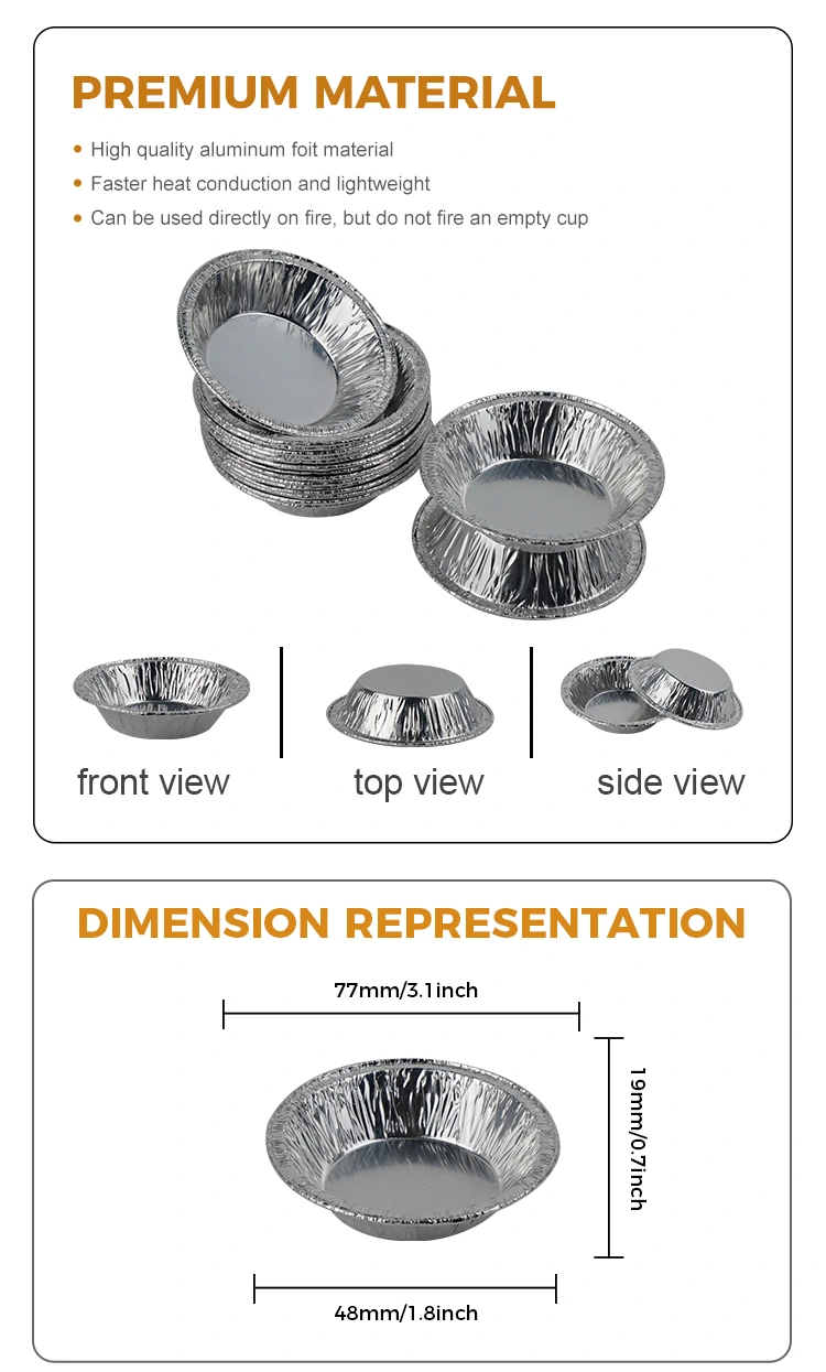 • Qəlyanaltılar üçün yuvarlaq yumurta tartı gümüş alüminium folqa qida qabıQəlyanaltılar üçün yuvarlaq yumurta tartı gümüş alüminium folqa qida qabı