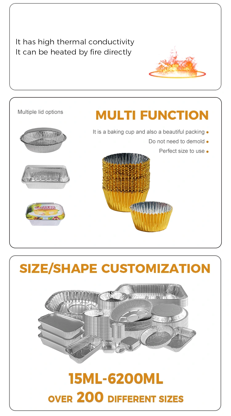 Bu dəyirmi kiçik paket çörək bişirən gümüş alüminium folqa konteyneri hər cür kiçik çörək məhsullarının qablaşdırılması üçün uyğundur, bütün məhsulların milli təhlükəsizlik standartlarına cavab verməsini və Alman ERP sertifikatını və ISO9001 sertifikatını almasını təmin etmək üçün keyfiyyətə nəzarət baxımından ciddi şəkildə idarə olundu.
