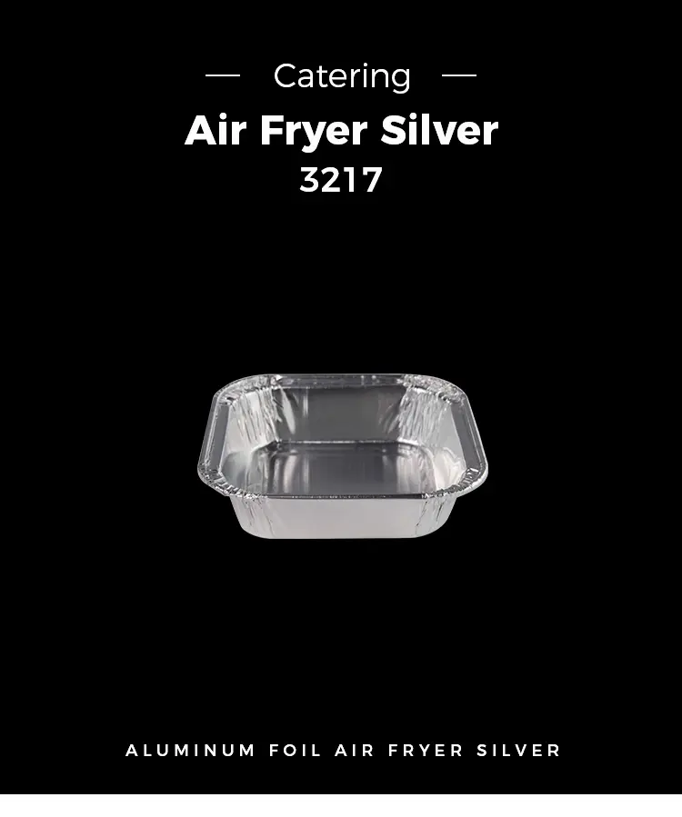 • Kvadrat tort hava fryer gümüş alüminium folqa qablarıKvadrat tort hava fryer gümüş alüminium folqa qabları