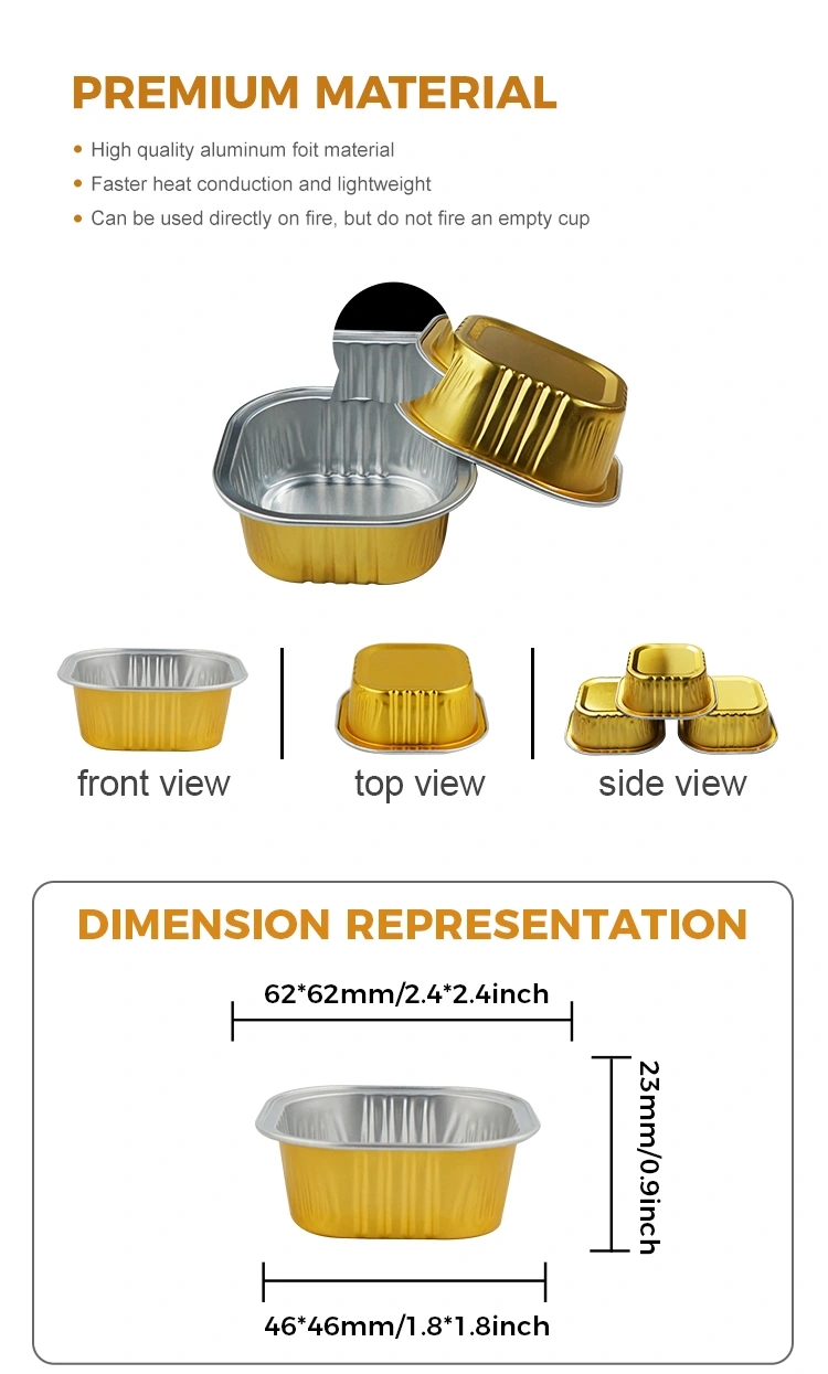 Yunchu alüminium folqa istehsalçısı kvadrat desert çörək bişirmə fincanları, paxçalanan folqa qabları, çörək bişirmə, sous və s. Cupcakes, qoruyucular, qısa çörək, pirojnalar, darçın rulonları, cheesecakes, qoruyucular və pudinglər daxil olmaqla müxtəlif desertlər etmək üçün uyğundur. Bu qabırğalı quruluş əlavə dəstək verir və kommersiya çörək zavodlarında və ya böyük supermarketlərdə istifadə üçün xüsusilə uyğundur.